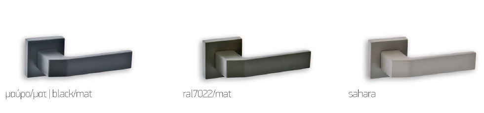 Τα χερούλια είναι κατάλληλα για τοποθέτηση σε πόρτες εσωτερικού χώρου, σε πόρτες ασφαλείας άλλα και σε κουφώματα. Οι τιμές που δίνονται είναι για μονό χερούλι με ροζέτα ή πλάκα, πατώντας πάνω σε κάποιο σχέδιο, δίνεται η επιλογή για ζεύγος χερουλιών με ροζέτα ή με πλάκα και για χερούλια με ροζέτα με λαβή WC. Τέλος στην ίδια καρτέλα εμφανίζονται και οι διαφορετικές επιλογές χρώματος.